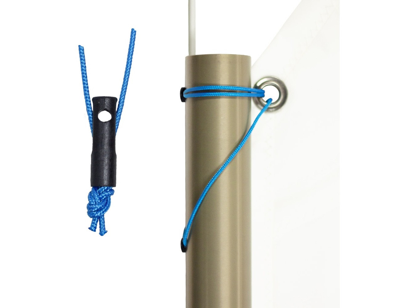 - Fünf 2,2 mm + zwölf 1,2 mm Bändsel fürs Segel