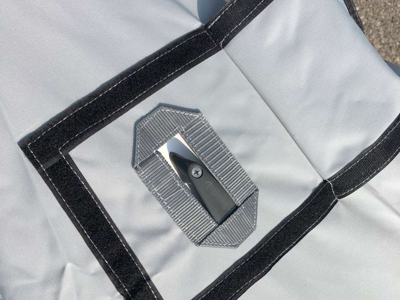 - Klettverschluss-Klappe am Bugbeschlag