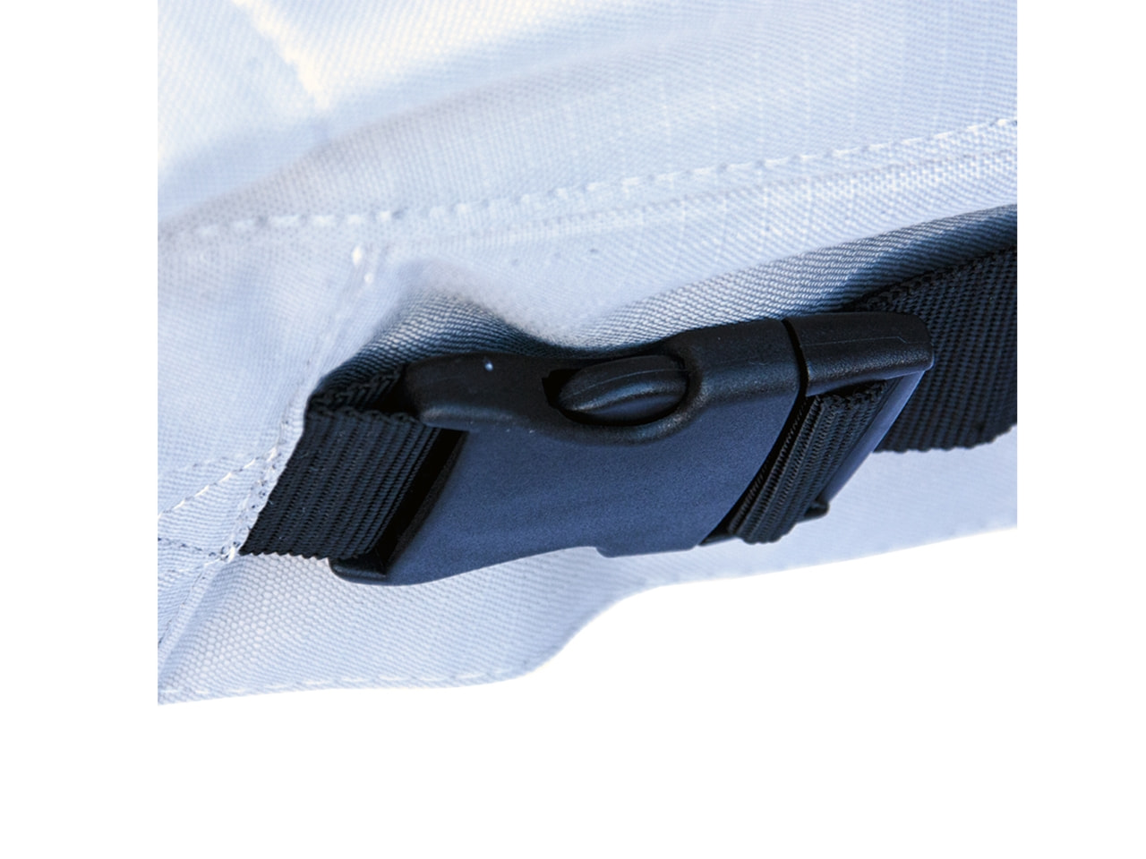 Zeltfunktion durch Latten: Die beiden integrierten Latten lassen sich spannen, sodass die Persenning konvex „aufgerichtet“ wird und Wasser leichter abfließt.
