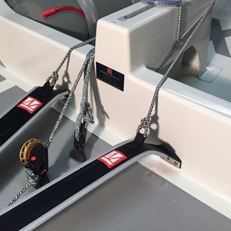 Fully rigged hull with buoyancy bags, mast lock, hiking straps, towline and mainsheet