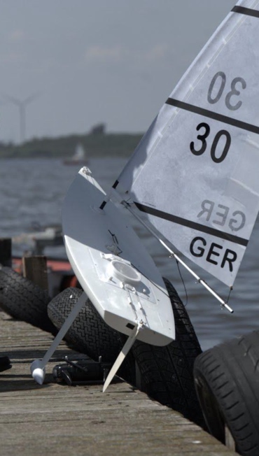 Die ferngesteuerte Modellversion der olympischen Laser-Segeljolle im Maßstab 1:4